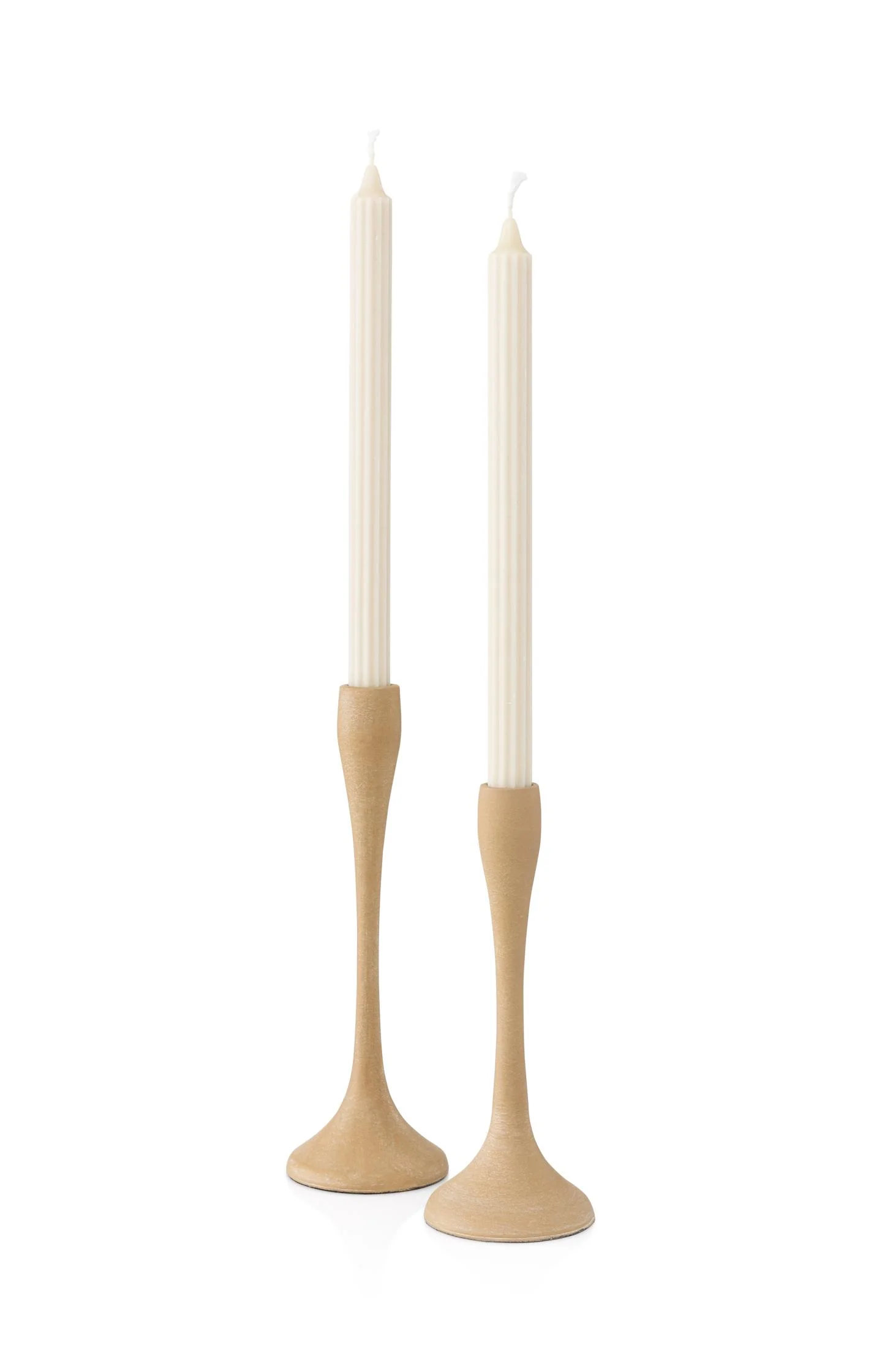 This elegant candle holder features a streamlined silhouette and a wide round base for stability. The soft finish and neutral tone make it a versatile piece for any interior. Perfect for a dinner candle. Dimensions: Ø8.5 cm, H20 cm.