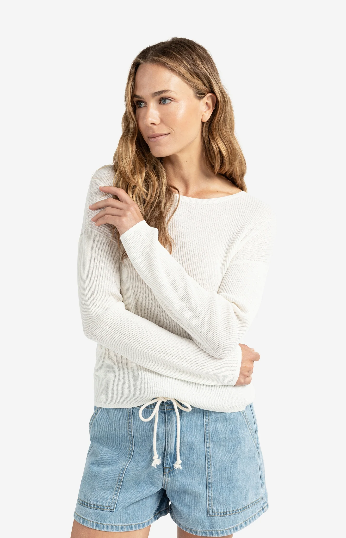 This elegant knit is crafted from a soft, fine ribbed fabric. It features a round neckline, a fitted fit, and a button closure down the back, adding a refined and unexpected twist. Perfect for creating a feminine and stylish layered look. The model is 178 cm and wears size S.