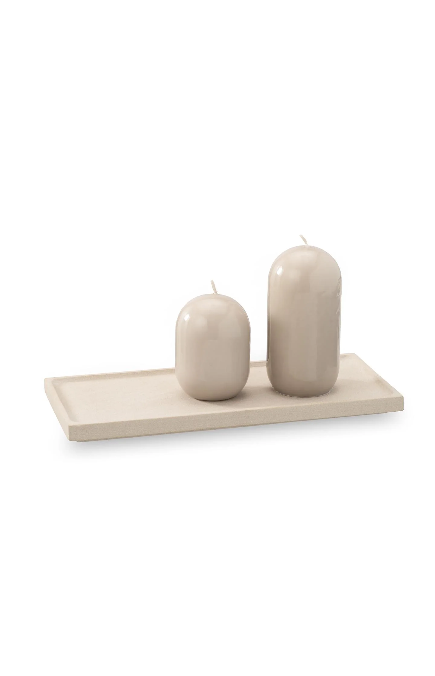 This capsule-shaped candle has an elegant glossy finish and a modern, rounded silhouette. With a diameter of 7 cm and a height of 14 cm, it makes a refined addition to your interior. Burn time approx. 33 hours. Available in two sizes and perfect to combine for a serene, contemporary atmosphere.
