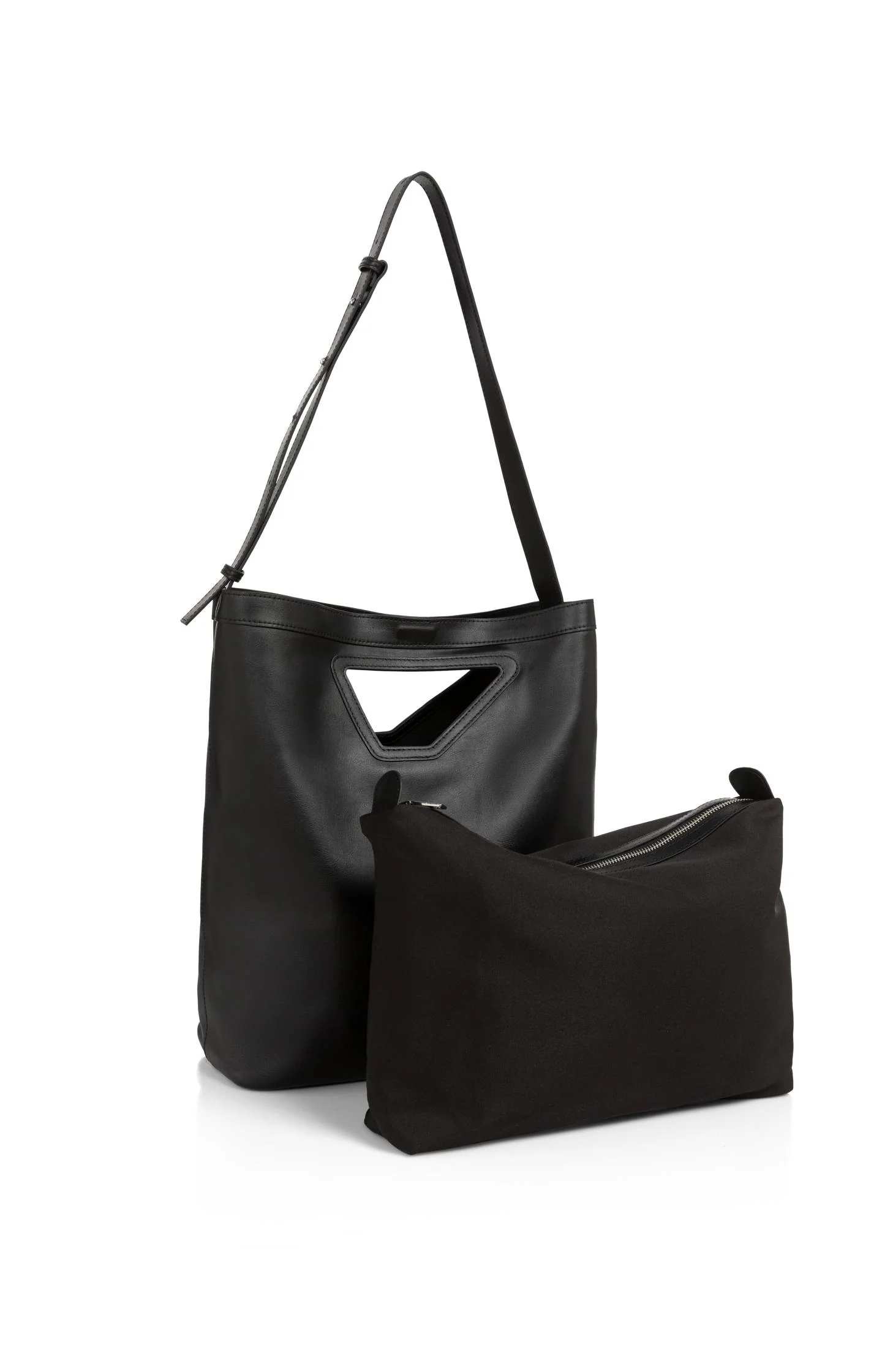 Leather shoulder bag with triangle handle