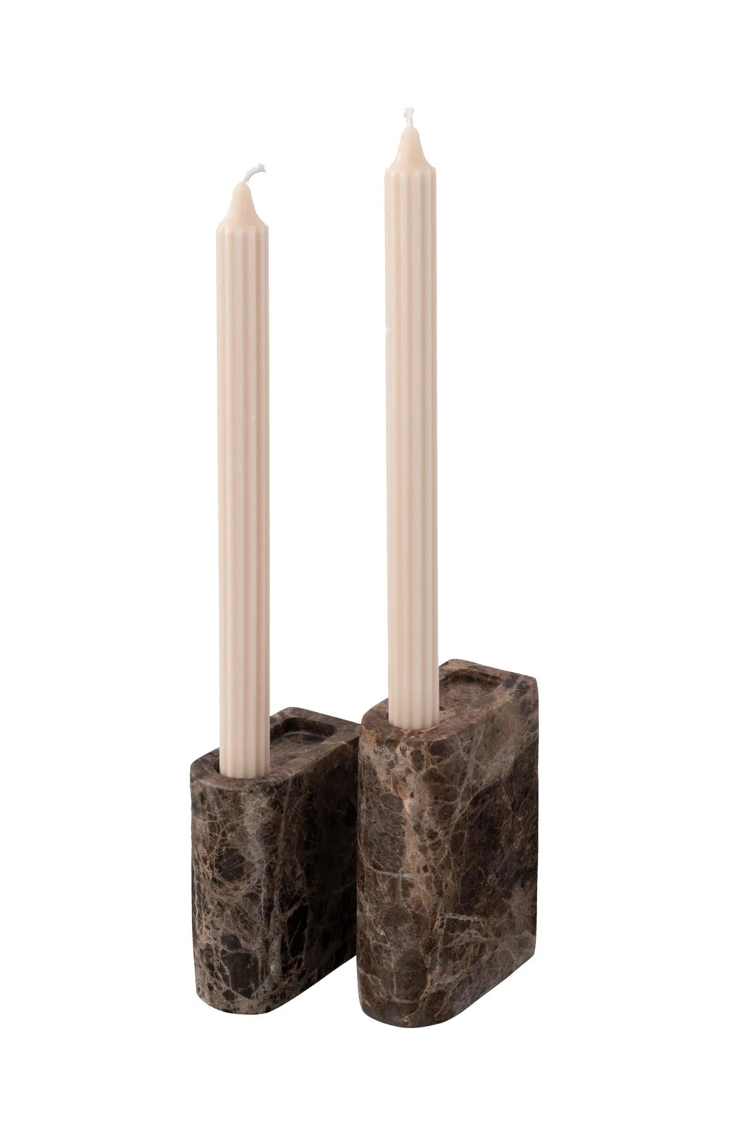 This marble candle holder has a sleek rectangular shape with an integrated pin that keeps a dinner candle securely in place. The natural stone pattern makes each piece unique. A stylish and timeless accent, perfect for modern interiors. Available in two sizes. Dimensions: W8.5 cm, D4.2 cm, H13 cm.