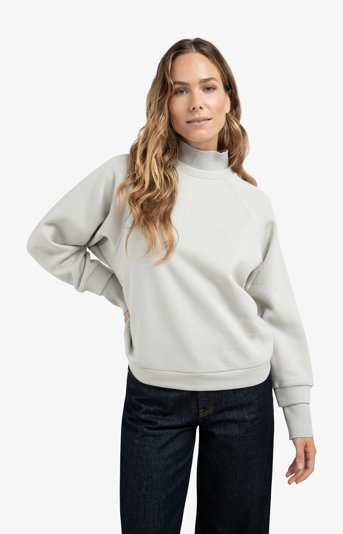Sweatshirt with high ribbed collar and extended cuffs